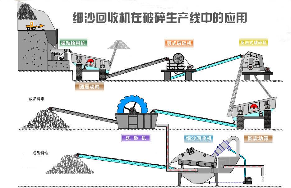 目前現(xiàn)有的人工細沙生產(chǎn)線上,絕大部分采用濕法生產(chǎn)工藝,不論采用何種形式的洗砂機,它的缺點就是細沙流失嚴重,嚴重影響沙子的級配,造成級配不合理,細度模數(shù)偏粗,大大降低了機制砂的產(chǎn)品質量。過多的細沙排放,還會造成環(huán)境污染。為解決上述問題,潛心研發(fā)了細沙回收機(細砂回收機),該細沙回收系統(tǒng)吸收國外先進技術,結合本土砂粉實際情況而設計的細砂回收設備。細沙回收機廣泛應用于水電站砂石骨料加工系統(tǒng)、玻璃原材料加工系統(tǒng)、人工制沙生產(chǎn)線、選煤廠粗煤泥的回收以及環(huán)保工程(泥漿凈化),可有效解決細沙回收問題。