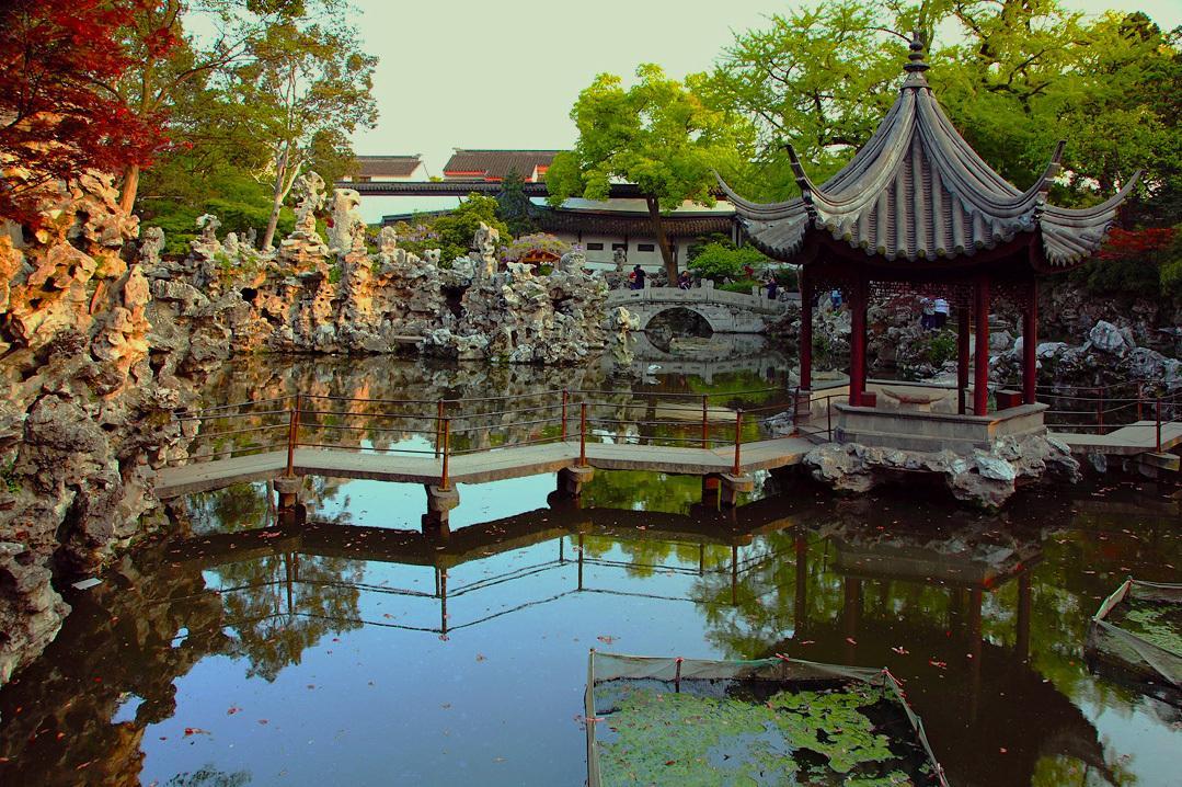 拙政園形成的湖、池、澗等不同的景區(qū),把風(fēng)景詩、山水畫的意境和自然環(huán)境的實(shí)境再現(xiàn)于園中,富有詩情畫意。整個(gè)園林建筑仿佛浮于水面,木映花承,四時(shí)宜人,處處有情,面面生詩,含蓄曲折,余味無盡,不愧為江南園林的典型代表。